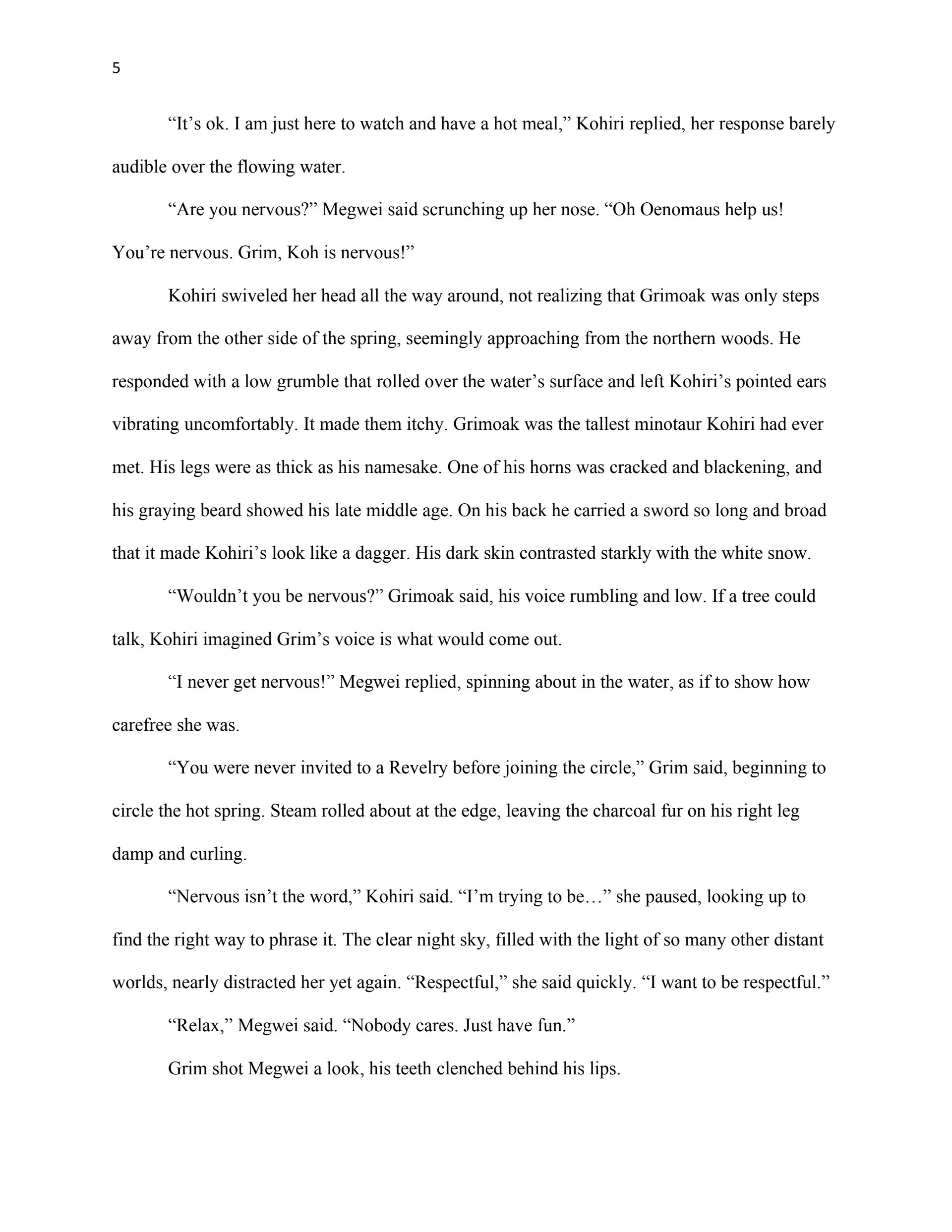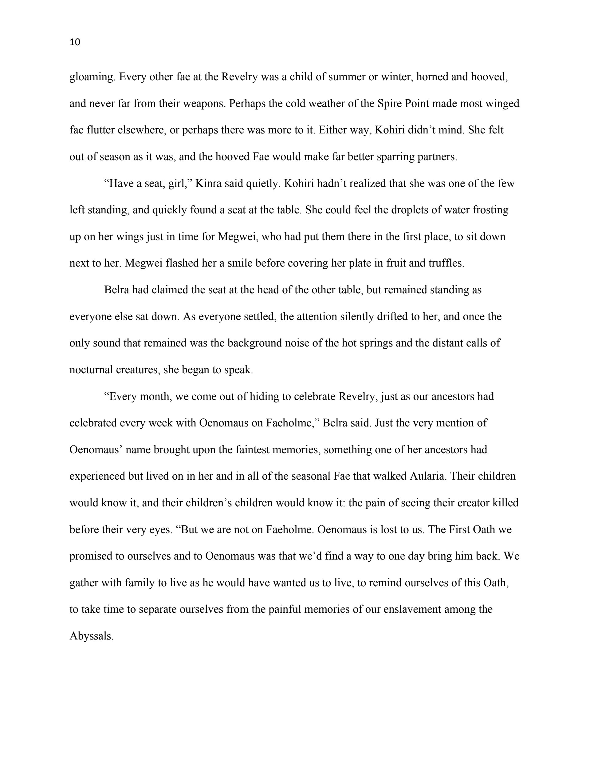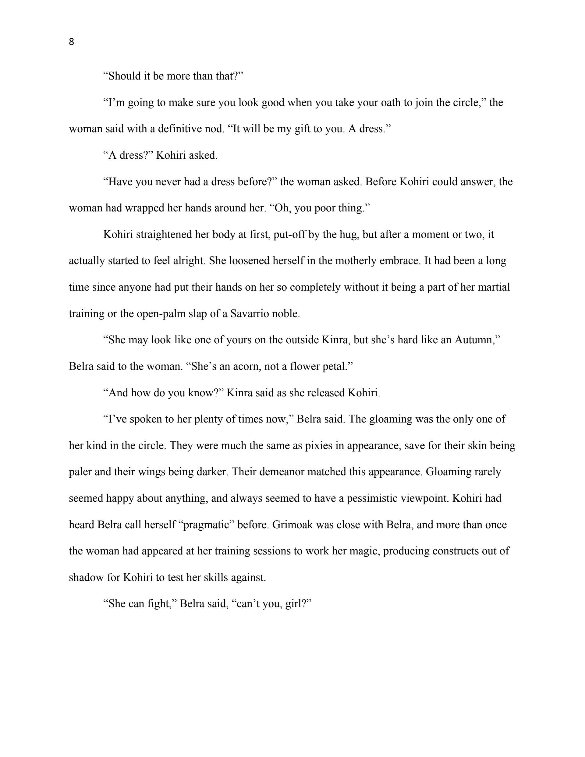 This writing sample was used as part of my thesis proposal for my Masters Degree in Creative Writing (Fiction Emphasis). The first chapter serves as an example of my ability to reveal planned world-building through narrative, create interesting characters, and write dialogue.
