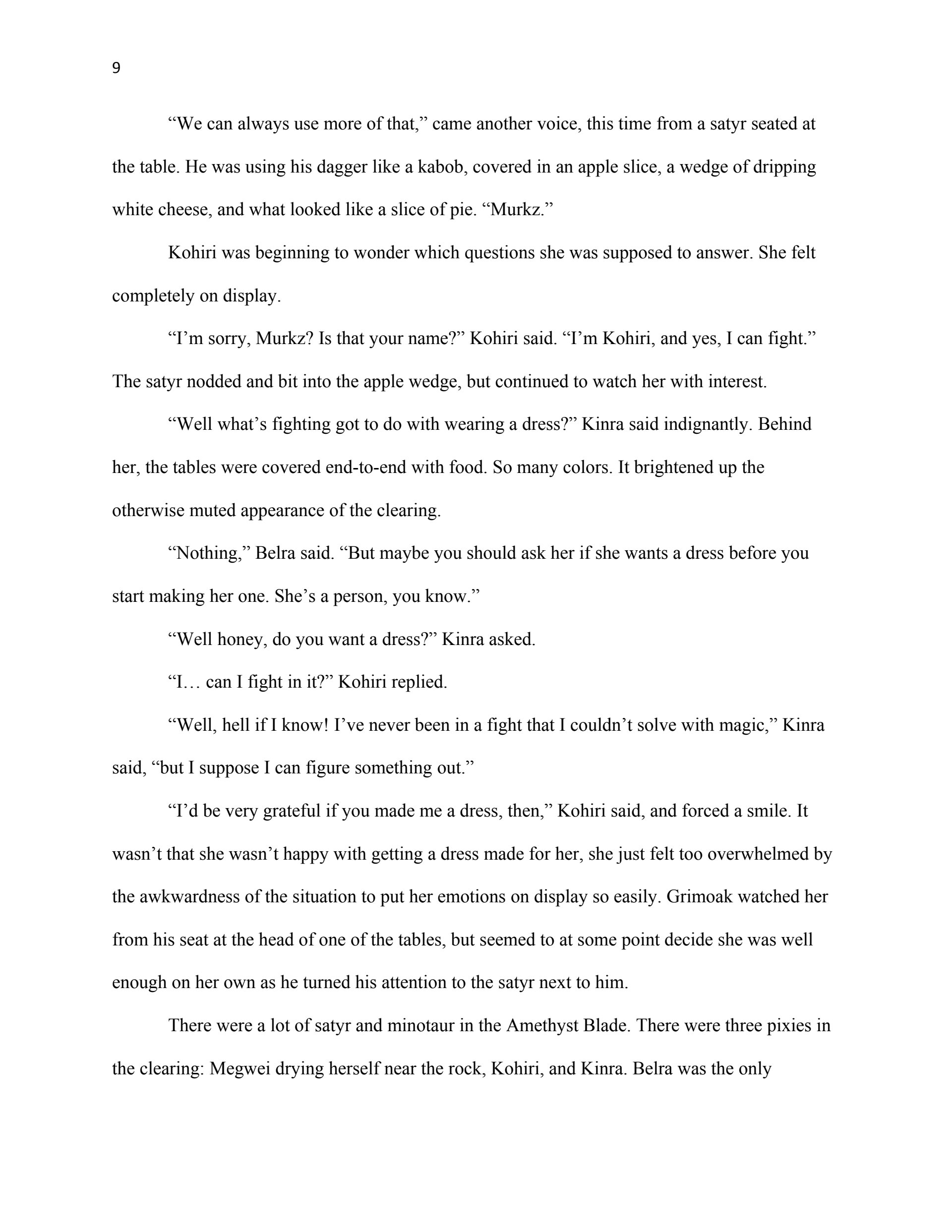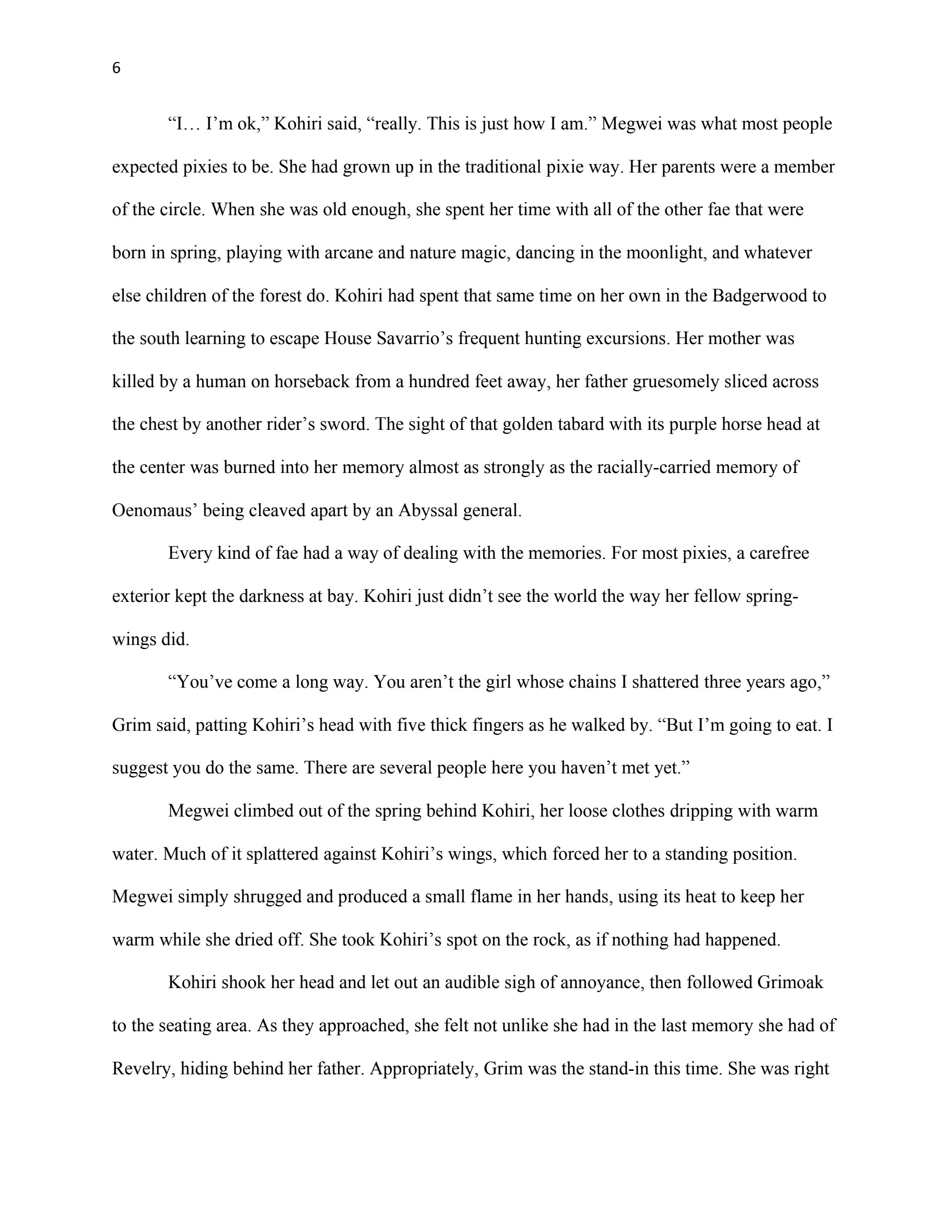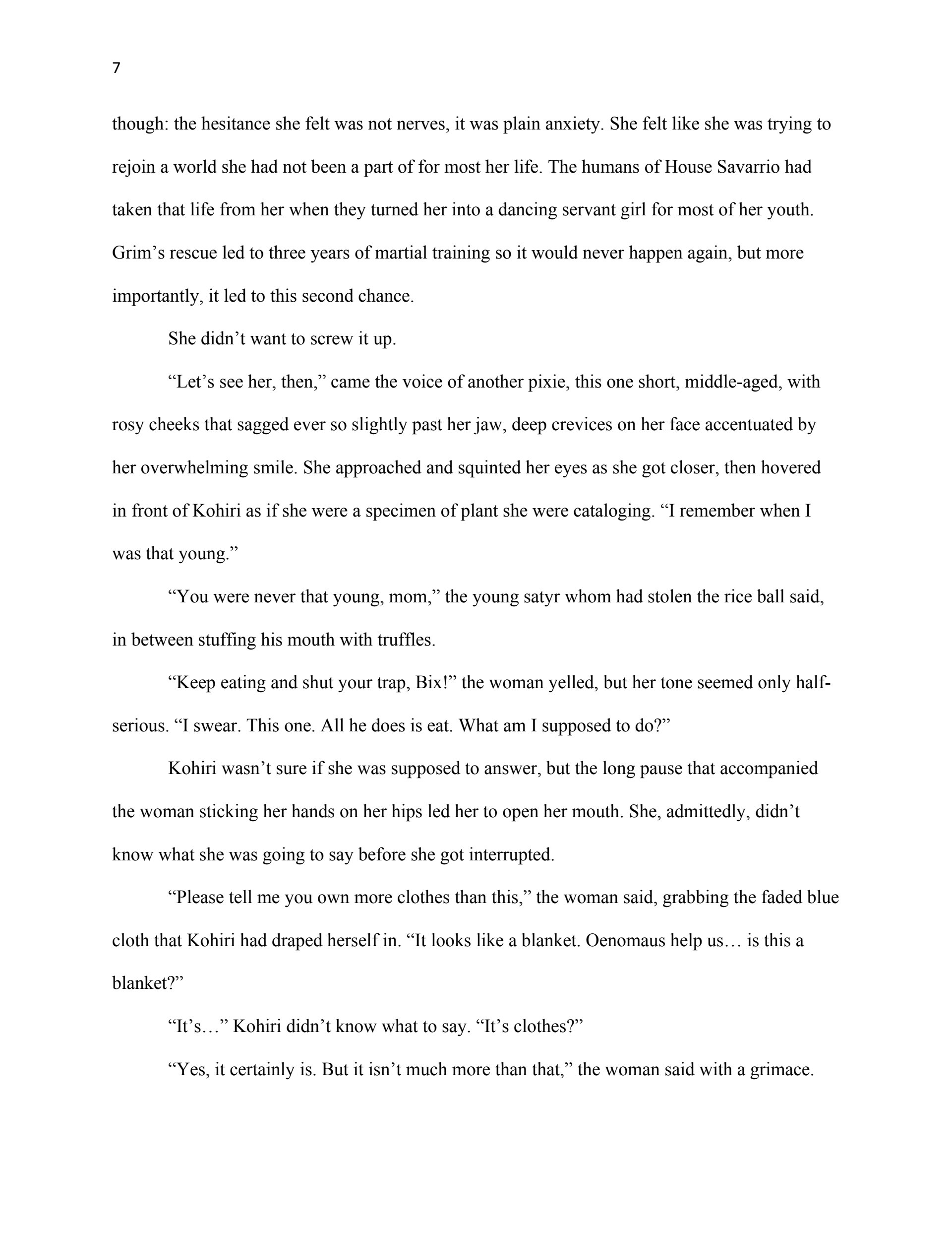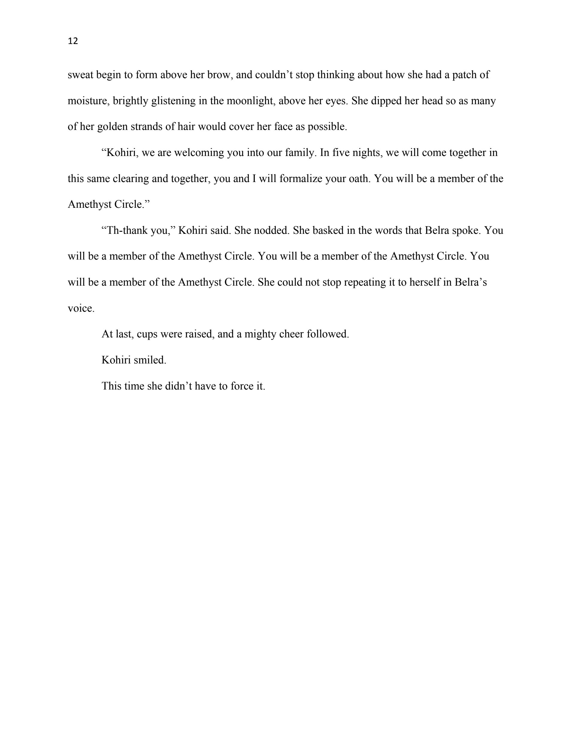 This writing sample was used as part of my thesis proposal for my Masters Degree in Creative Writing (Fiction Emphasis). The first chapter serves as an example of my ability to reveal planned world-building through narrative, create interesting characters, and write dialogue.